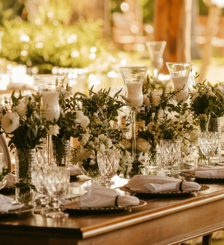 Every couple has a unique story your wedding should reflect that. We design each element with intention: the ceremony arch, the reception tables, the florals, and even the smallest décor details. Our mission is to create a day that feels personal, elegant, and unforgettable.